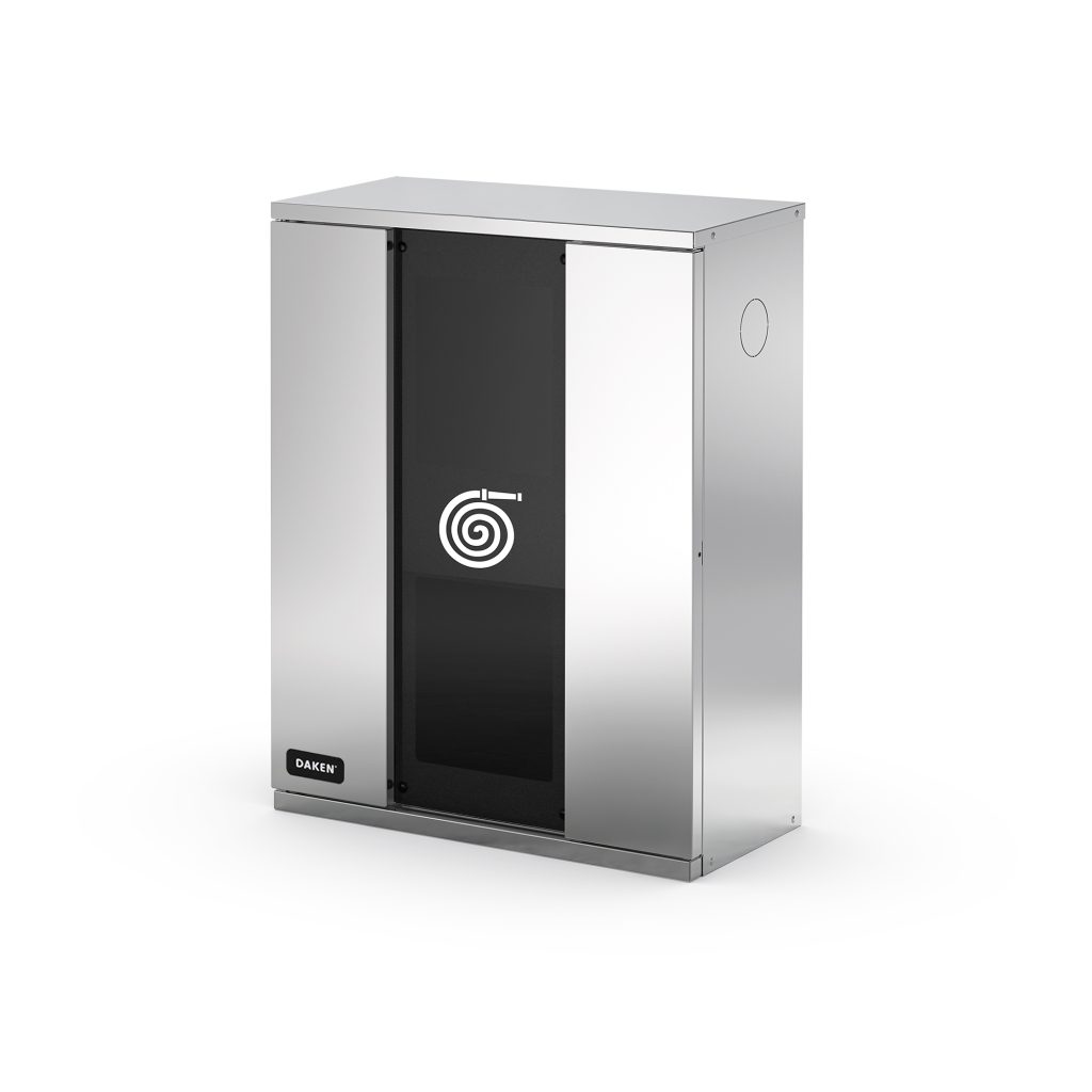 Hose reel cabinet in steel with a sophisticated design and squared lines with a strong and unusual character. The box is equipped with a magnetic latch and the lid is fit for security seals. Wall or free-standing fixing.- AVAILABLE FINISHING: